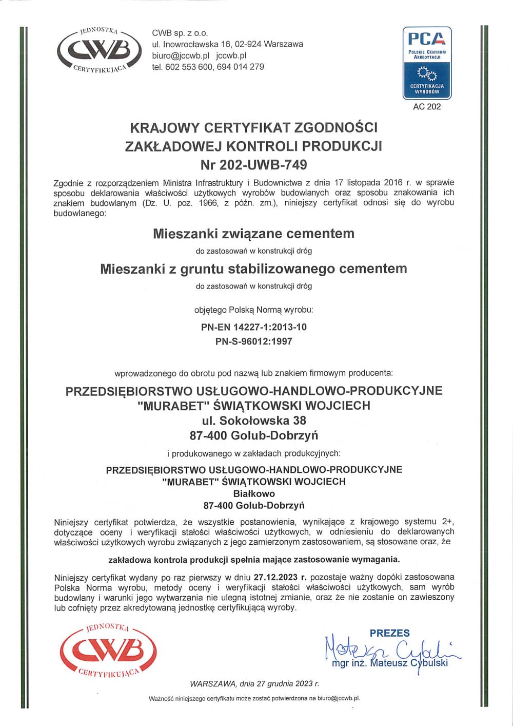 - mieszanek związanych cementem w klasach CBGM C0,4/0,5 do C 6/8